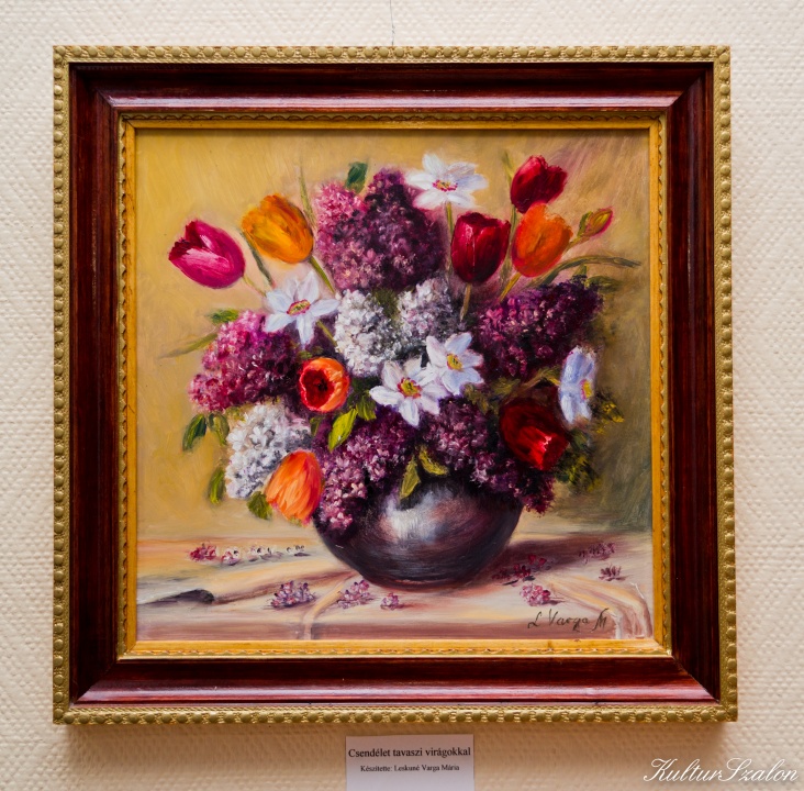 A virágok jól megszokott csendéletein túl a különböző használati tárgyak teszik igazán intimmé a Leskuné Varga Mária képeit. Olajképein sokféle „kellék” teszi mozgalmassá a teret, szinte élnek e művek. Az otthagyott kottalapok például önkéntelenül is arra kényszerítik a látogatókat, hogy hajoljanak közelebb, próbálják megfejteni, mely klasszikus zeneművet idézik a hangjegyek. Még ennél is többet árul el a festőről hegedűje, mely lazán ottfelejett jelenlétével sok mindent elárul gazdájáról, annak hobbijáról egy kívülálló, festészetért rajongó néző számára.