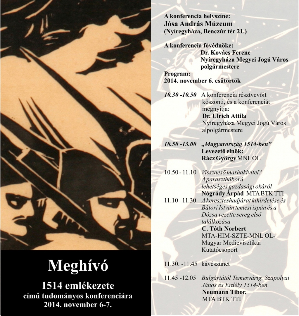 A Jósa András Múzeum minden érdeklődő figyelmébe ajánlja az 1514 EMLÉKEZETE című tudományos konferenciát.