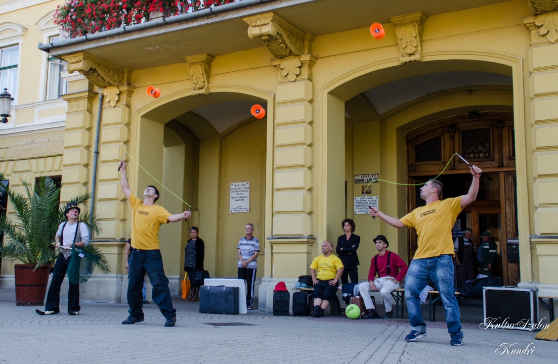 Szeptember 3-án a délután a városháza előtt az akrobaták, Csocsó bohóc bemutatója előtt "szép hazánknak vitéz ideibül való játékot" nézhettek a belvárosba járók a kiskunfélegyházi Langaléta Garabonciások előadásába.