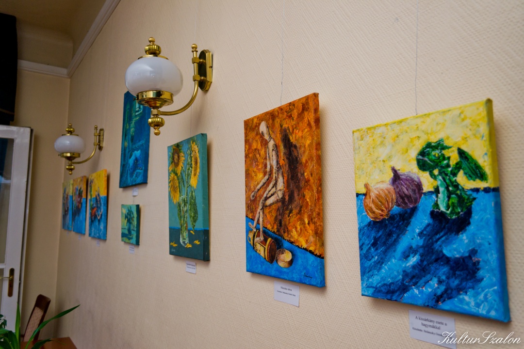 A három festőnő teljesen elüt egymástól színvilágában, technikájában, stílusában, ám ha megáll valaki az Európa terem közepén és körbefordul, úgy érzi, harmónia veszi körül. Tökéletesen illeszkedik az orgona, pipacs, napraforgó a könyvhöz, hangszerhez, mécseshez vagy éppen a gyermekjátékokhoz, amelyek mind mesélnek valamiről a nézelődőknek. Érdemes „belehallgatni” ezekbe a „csevejekbe”!