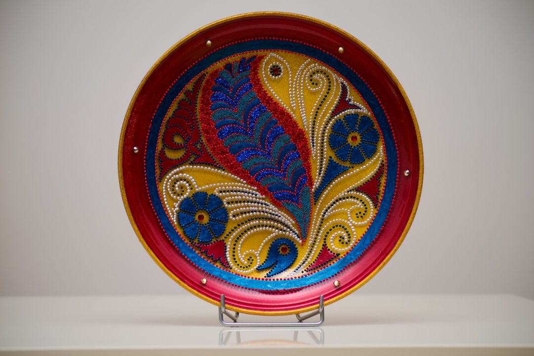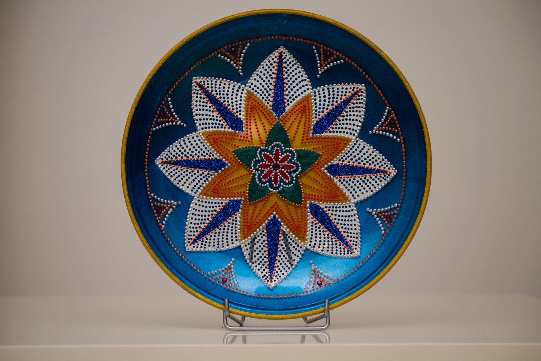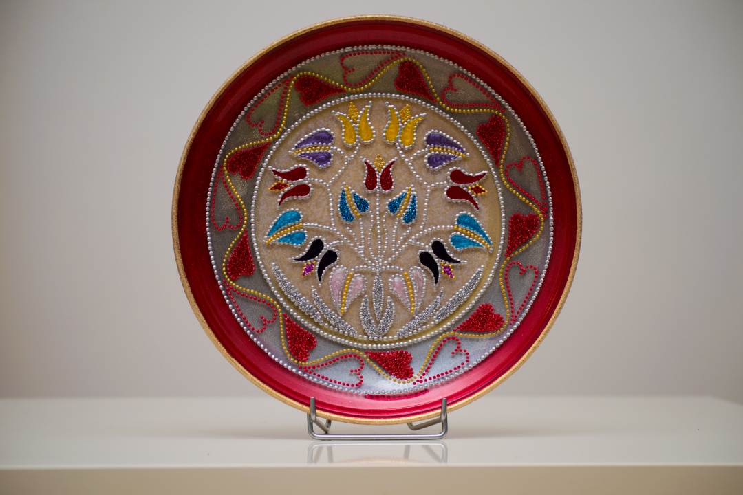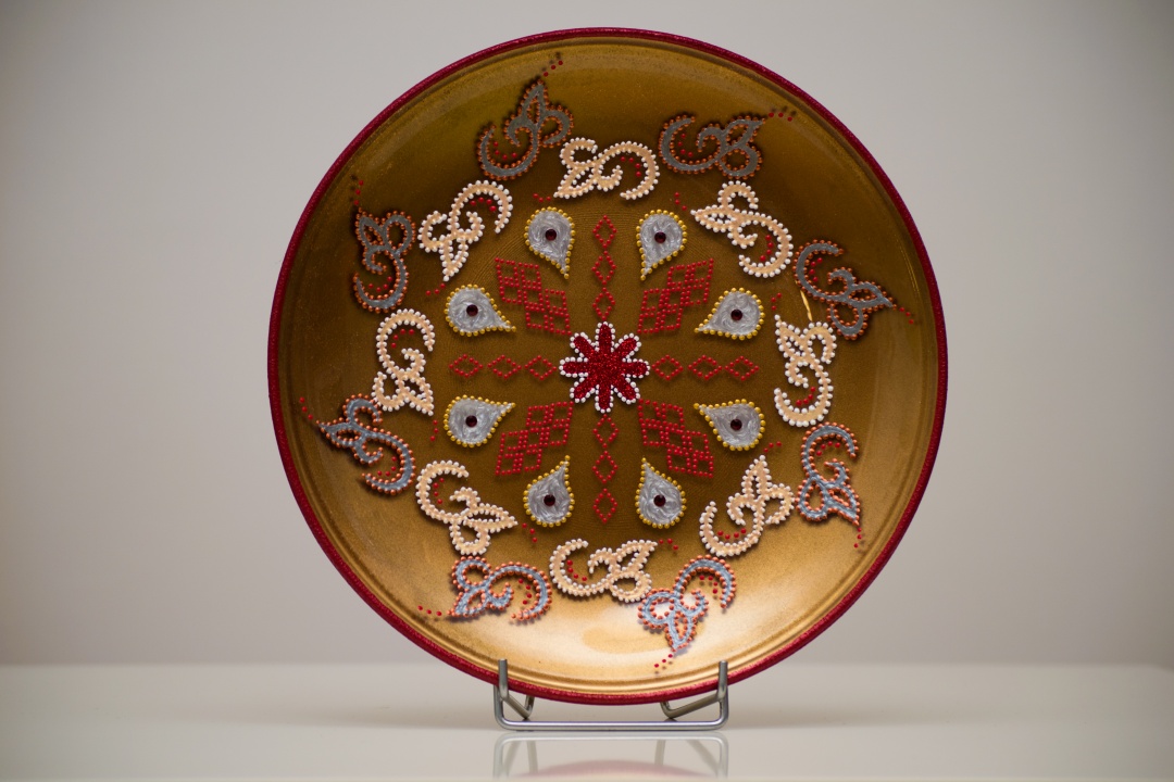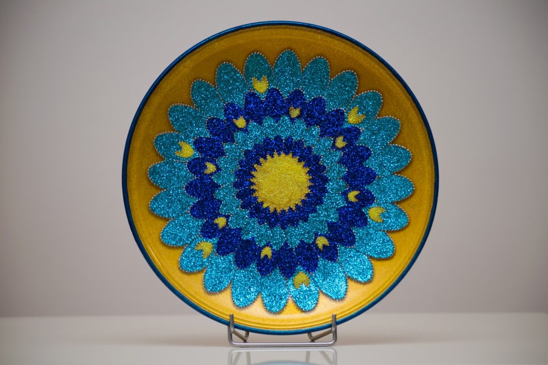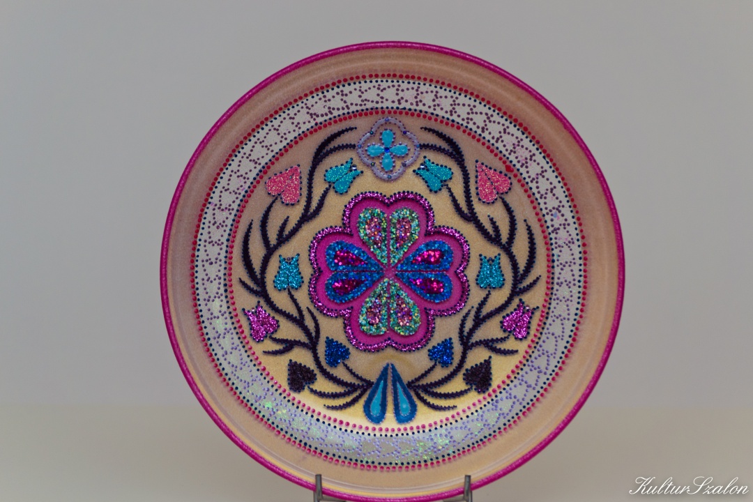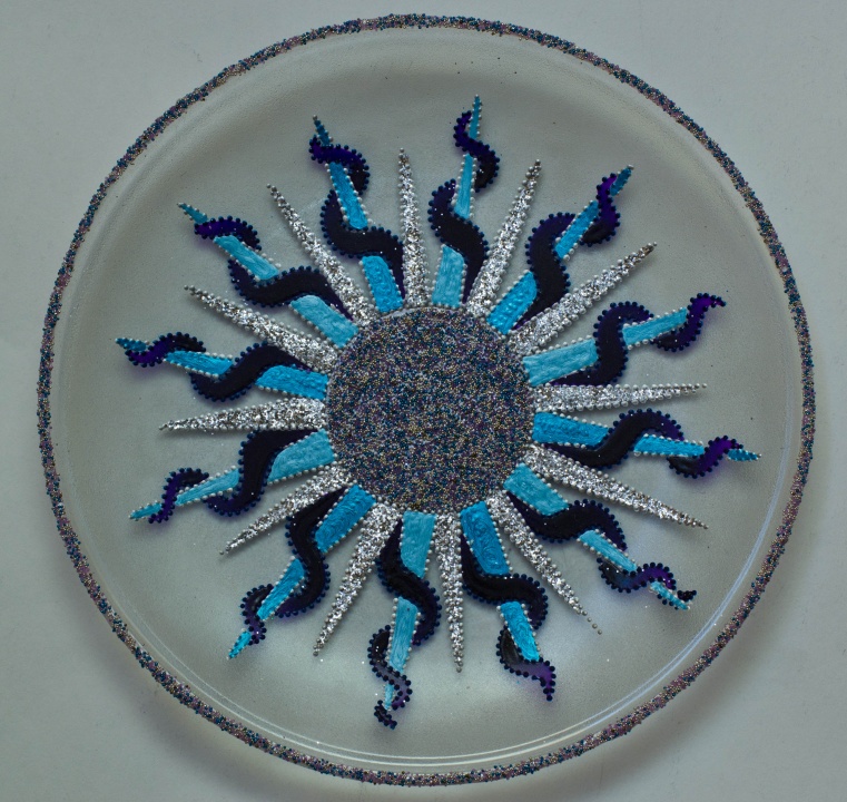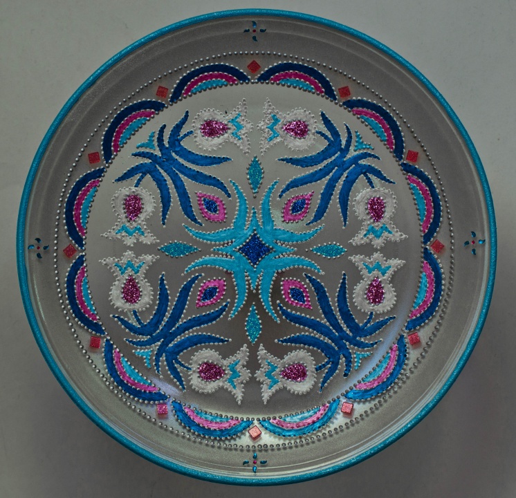 Üveg tálakra festettem különféle szimbólumokat, formákat, így születtek a képeken látható energetizáló mandalák.