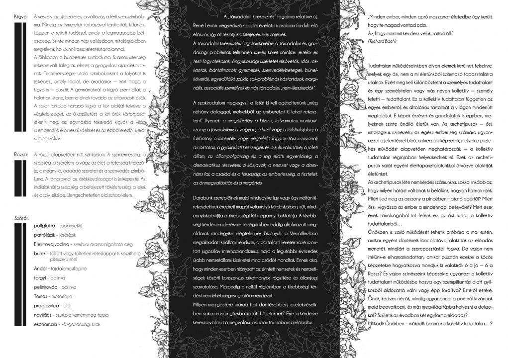 Darabunk szereplőinek majd mindegyike így vagy úgy méltán kirekesztettnek érezheti magát valamelyik kérdéskörben, sőt, mindannyiukat sújtja a kisebbségi lét megannyi buktatója. A kisebbségi kérdés rendezésére térségünkben eddig alkalmazott megoldások mindegyike elégtelennek bizonyult: a Versailles-ban megálmodott kisállami rendszer, a pártállami keretek közé szorított jugoszláv internacionalizmus, majd a legutóbbi évtizedek újabb nemzetállami kísérletei mind csődöt mondtak. Ennek oka, hogy minden esetben hiányzott az érintett nemzetek és nemzetiségek közötti konszenzus alkotmányos rögzítése és államjogi szavatolása. Márpedig e nélkül régiónkban a kisebbségi kérdést nem lehet megnyugtatóan rendezni.